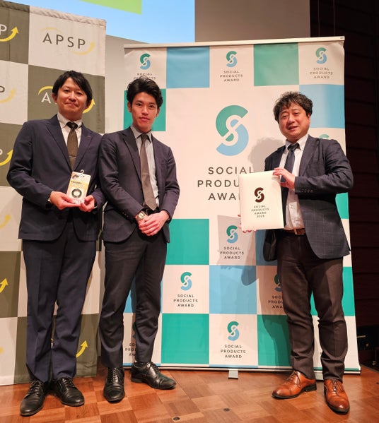 「ソーシャルプロダクツ・アワード2025」授賞式の写真(左から、日本クロージャー 営業推進部 課長 大久保 雄祐、同部 佐瀬 裕樹、同部 課長 三野 宏)