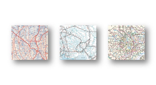 路線図クリーニングクロス3枚セット 660円(税込)。1963年5月、1968年10月、2024年12月の路線図を使用。眼鏡やスマートフォンのお手入れにどうぞ!