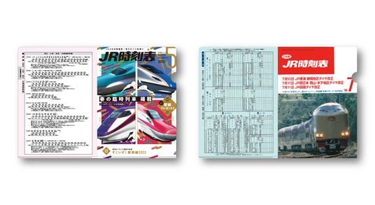 時刻表クリアファイル(1998年7月号)(2022年5月号) 各440円(税込)。表紙を使用したクリアファイル。時刻や編成は表紙の月号に掲載された誌面を使用!