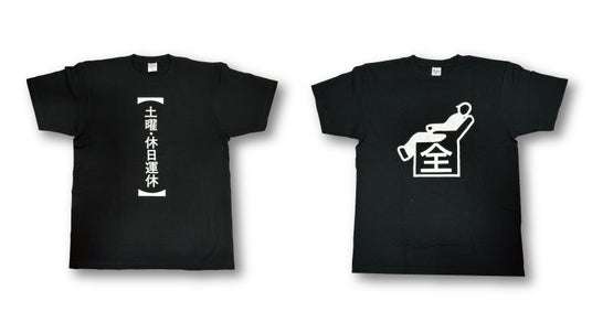時刻表Tシャツ(土曜・休日運休ロゴ)(全車指定席ロゴ) 各3,190円(税込)。時刻表本文でおなじみのロゴをプリントしたTシャツ。LとXLの2サイズで展開!