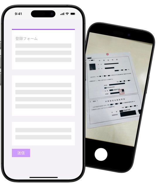 遷移先の申請フォームに必要事項を記入し、卒業証明書の写真をアップロードする。