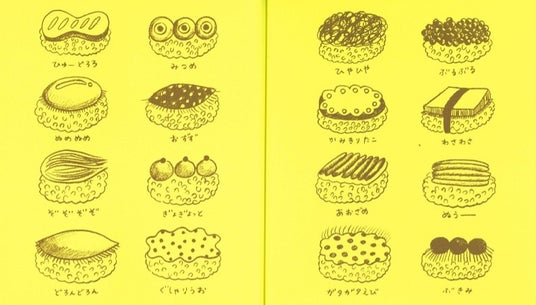 なんと、おばけもお寿司が大好き!? 見返しに並ぶおばけずしネーミングにも注目!