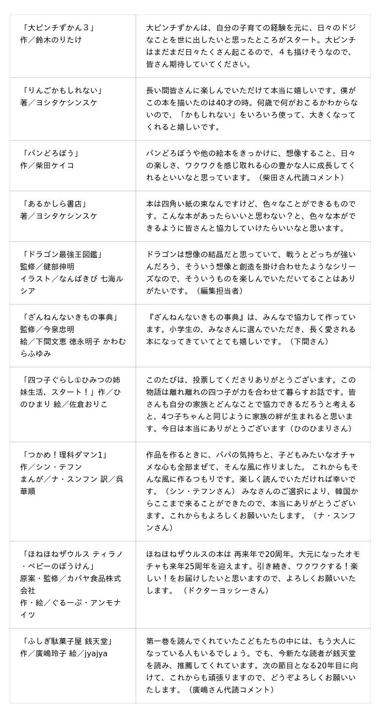 投票総数 62,546 票!こどもたちが選んだベスト 10 が決定!『第5回 小学生がえらぶ!“こどもの本”総選挙』 ベスト 10