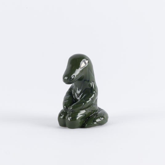 じっと静かに正座をしているワニ。強さと優しさのエネルギーにあふれた作品です。