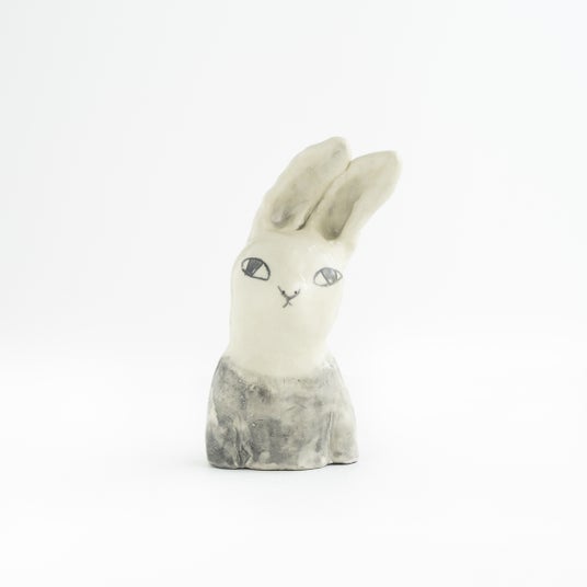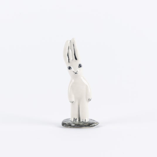 シリーズ最初の作品。こちらの注意をひくように小さな体を少し傾けるうさぎ。