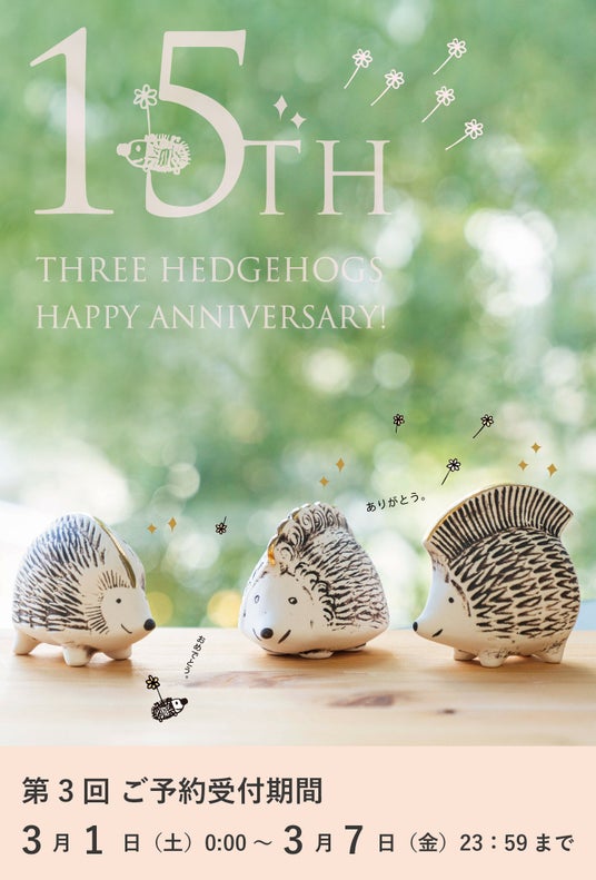 スウェーデンの陶芸家リサ・ラーソンのはりねずみ3兄弟の生誕15周年を記念して製造された特別な陶器が、3/1(土)から先着予約販売スタート。全333セット限定の幻のアイテムです。