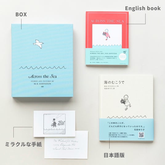 1968年にアメリカで発表されたM. B. ゴフスタインの『海のむこうで(原題:ACROSS THE SEA)』は、ゴフスタインの代表作『ブルッキーと彼女の子羊(原題:Brookie and Her Lamb)』と『人形づくりのゴールディー(原題:Goldie the Dollmaker)』の刊行された作品集です。長らく未刊行で「幻の作品」とされていましたが、近年その静かで味わい深いトーンが評価され、再評価されています。本作は、ゴフスタイン初期の傑作の一つとして注目され、50年の時を経て日本語版が誕生しました。翻訳は女優・石田ゆり子によるもので、ファン待望の日本語版です。『海のむこうで』を構成する5つの物語
