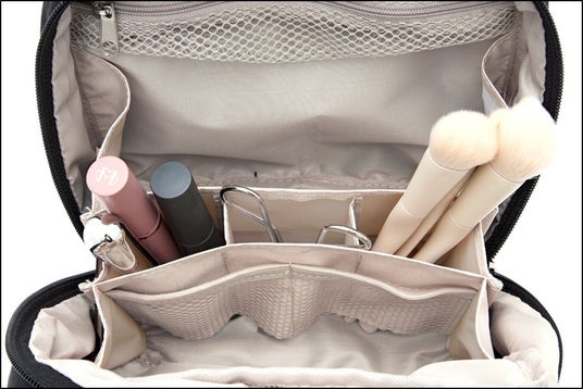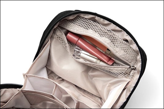 意匠登録されたブリルミーならではのこだわりの仕様。仕切りによってリップやブラシを縦入れ収納でき、パウダーの平置きなど、埋もれがちなポーチの中身が一目でわかります。見た目だけでなくさらに使いやすくアップデート。