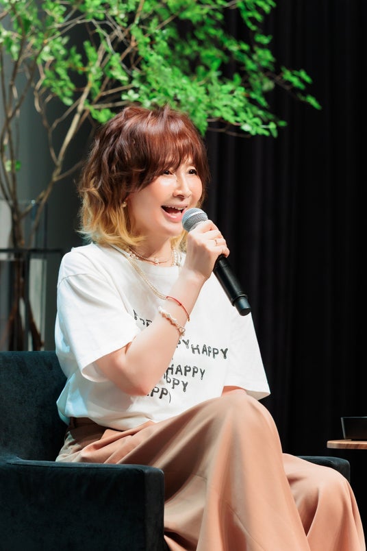 本イベントのテーマである「ヘルスケア」については、最近ピラティスに通っていることを明かし、「どこに力を入れているか、ここには力を入れなくていいとか理論的に教えてくれ、頑張らなくてよいところに力を入れていたという気づきがある」と話しました。「1回でもいいからパーソナルトレーナーに指導を受けるのがおすすめ。自分にあったいい先生と出会えるといいですね」とアドバイス。「ビューティ」については、「18歳でヘアサロンを卒業してからずっと、カットもカラーも自分でやっております」「今は内側だけ脱色して、それ以外はホームカラーで。昨日も髪を文具用のはさみで切りました」と会場を驚かせました。