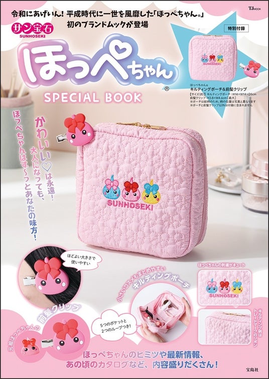 平成女児たちを虜にしたサン宝石の看板キャラクター・ほっぺちゃんのキルティングポーチと前髪クリップが特別付録の『サン宝石 ほっぺちゃん(R) SPECIAL BOOK』を2026年4月22日に発売します。