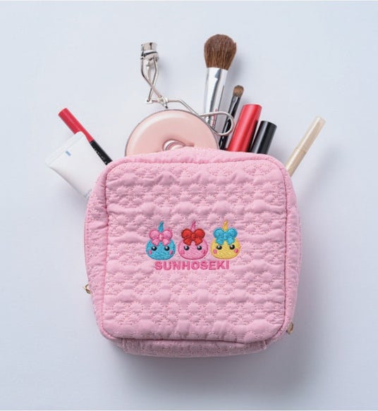 キルティングポーチは、5つのポケットと2つのループつきで収納力抜群!コスメや文房具を入れるのにぴったりです。大人かわいい淡いピンク地に、ほっぺちゃんのトレードマークであるリボン柄のキルティングステッチが入ったポーチは、子どもから大人まで愛用できるデザインです。前髪クリップは濃いめのピンク色で、キュートなほっぺちゃんを完全再現!毎日のメイクもテンションが上がるかわいらしさです。