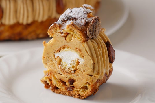 香ばしいナッツの風味と、バターの豊かなコクが広がる濃厚プラリネクリームを、しっかりと焼いたシュー生地と合わせました。中山パティシエのこだわりの一品です。