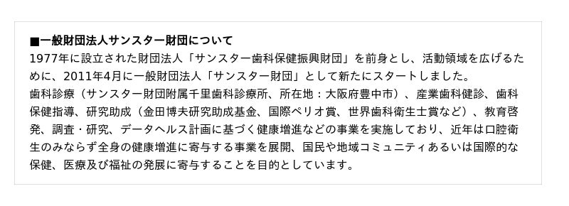 一般財団法人 サンスター財団 TEL:072-682-7298 FAX:072-681-0359