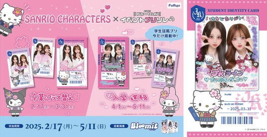 フリュー株式会社(本社:東京都渋谷区、代表取締役社長:三嶋隆、以下 フリュー)は、プリントシール(以下 プリ)機『Bloomit(ブルーミット)』に、株式会社サンリオのキャラクターたちが登場する「サンリオキャラクターズ 学生証プリ」を2月17日(月)から5月11日(日)まで、期間限定で搭載いたします。