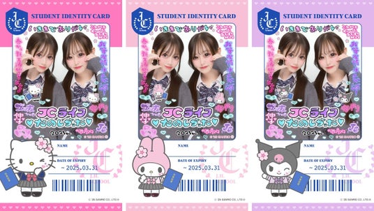 画像右:「サンリオキャラクターズ 学生証プリ」JK卒業デザインイメージ