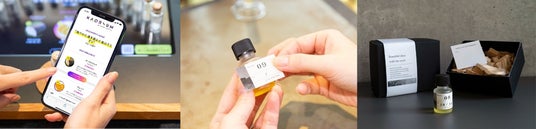 これを何度か繰り返すと、AIがお客様の好みの傾向を分析し、3つの香りへと絞り込みます。また、最後には、「感性言語」という情景的なキーワードを導き出して、好みの香りの印象を表現します。体験結果は、表示された二次元コードをスマートフォンで読み込むと持ち帰ることができます。ご自分だけでなく、友人や大切な方と試せば、お互いの趣向も知れて楽しめます。また、大人気のアロマブレンドワークショップに参加すれば、選び出した香りを起点に、生活の木×KAORIUM限定レシピによるアロマブレンドづくりを体験いただけます。