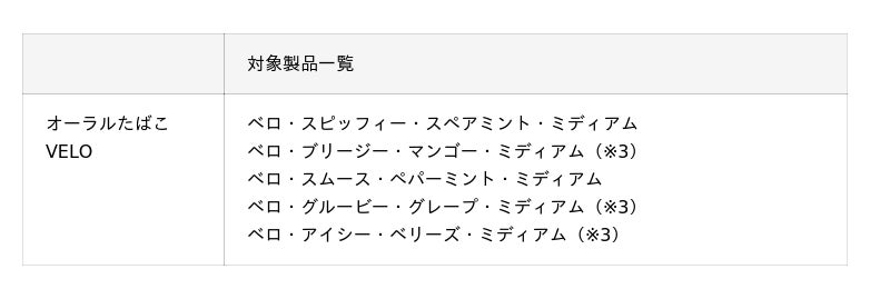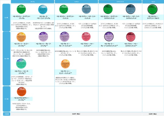 ■オーラルたばこ「VELO」製品一覧