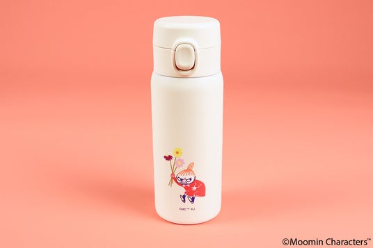 ワンプッシュステンレスボトル350mlお花を持ってジャンプするリトルミイのアートが印象的なデザインのステンレスボトルです。軽量でコンパクトな作りでバッグにも収まりやすく、持ち運びに便利なサイズ感が特徴。保温・保冷機能を備えており、温かい飲み物も冷たい飲み物も好みの温度で楽しむことができます。