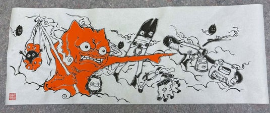 【大蛇堂】(おろちどう)妖怪掛け軸専門店。メジャーな妖怪からマイナーまで幅広くオリジナルイラストを描き、掛け軸を制作。すべて布製で丈夫で扱いやすい。中サイズ以上の掛け軸はすべて1点もののアート作品です。掛け軸 6,000円~