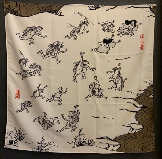 風呂敷3,100円:河童が人間から尻子玉をぬくという愉快な場面を風呂敷に。