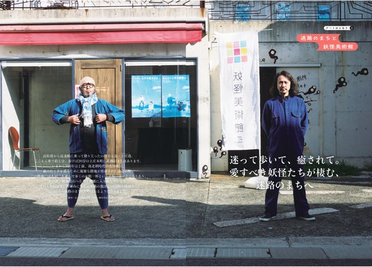 土庄港から歩くこと、約20分。入り組んだ路地が続くことから「迷路の町」と呼ばれている地域にある900体を超える妖怪アートを展示する「妖怪美術館」と、3代続くお菓子屋さんなど、迷路のまちで昔から暮らしお店を営む人々のこれまでとこれからを紹介。