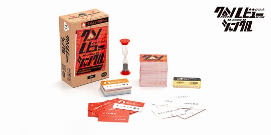 『クソレビュージャングル』は、大人気ボードゲーム『たった今考えたプロポーズの言葉を君に捧ぐよ。』のスピンオフ作品です。発売後、即完売となった第1弾『教祖爆誕』に続く第2弾。簡単ルールはそのままで、誰でもすぐに遊べるゲームとなっています。