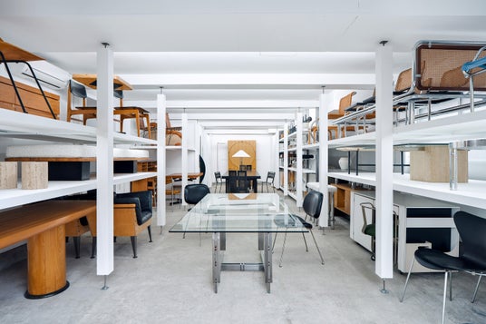 1949年当時の天井や壁、梁を活かしながら改修を行った外階段から繋がる新たなギャラリースペースでは、オープニングエキシビジョンとして stoop が世界各国から収集した非売品のコレクションを含むヴィンテージの名作チェアを展示・販売いたします。