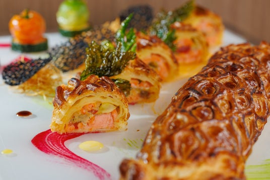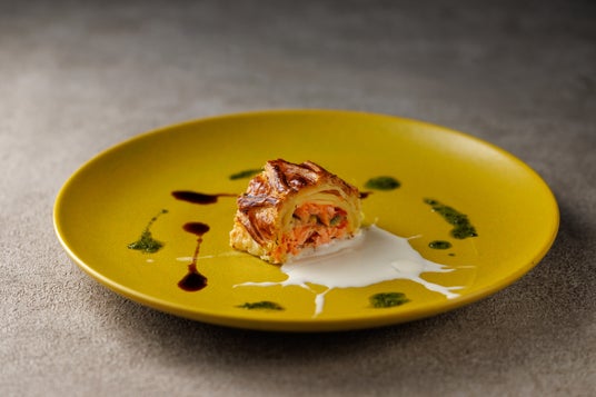 パリッと焼き上げたパイとしっとりとしたサーモンの食感を楽しむ【とっとり琴浦グランサーモンのアンクルート】