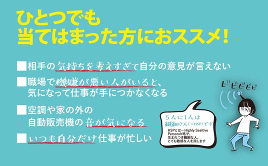 そんな「繊細さん」(HSP)たちから、「人間関係も仕事もラクになった!」と大評判。予約殺到の「HSP(とても敏感な人)専門カウンセラー」による初めての本です!