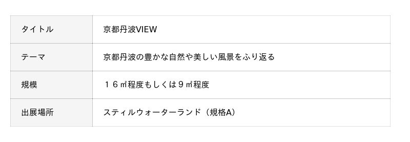 "京都丹波の風景"と"サステナブルな未来の暮らし"をテーマに、あなたのアイデアや技術が生かされた庭園作品で『京都丹波の魅力』を表現してください。
