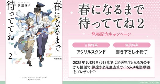 直筆サイン入り複製原画が当たる!伊達きよ先生/犬居葉菜先生『春になるまで待っててね(2)』発売記念キャンペーン開催!【ホーリンラブブックス】