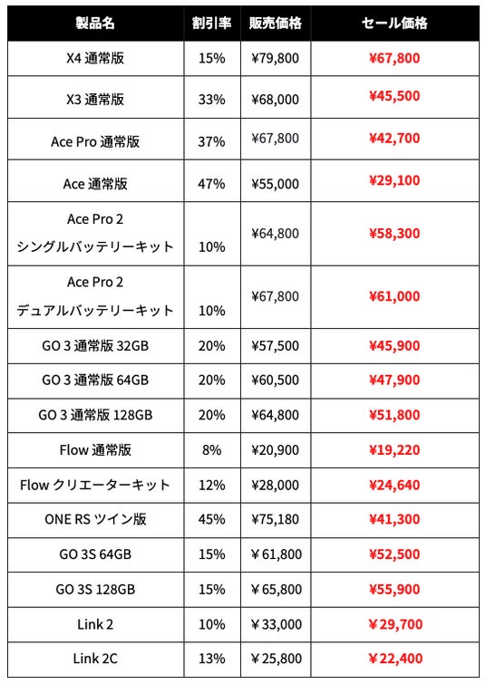~ Ace Pro 2が初セール対象に。大人気360度アクションカメラX4、X3がお買い得 ~