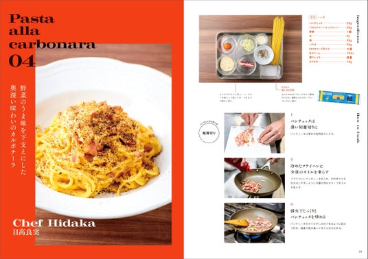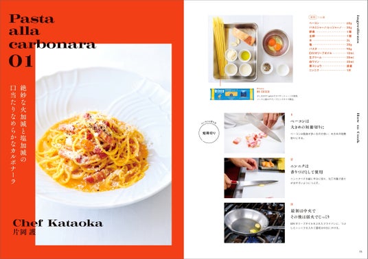 本書では日本におけるイタリア料理の先駆者のひとりとされるイタリア料理協会会長の片岡護シェフ、山田宏巳シェフ、日高良実シェフなどの一流イタリアンシェフが登場。また、イタリアン以外のシェフたちにもカルボナーラの作り方を披露していただいています。