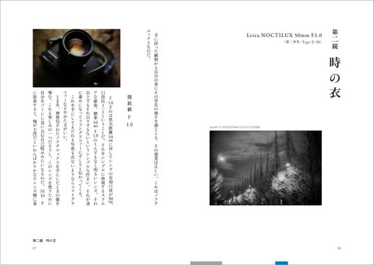 本書は、プロフォトグラファーの南雲暁彦氏がライカで撮り下ろした作品を満載した全17章からなるフォトエッセイ。撮影に取り組むプロセスやその時々の心情を綴りながら、各章1本のライカマウントレンズを紹介する内容となっています。