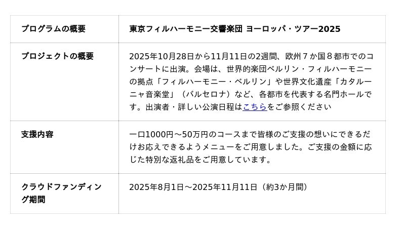 ♪東京フィル ヨーロッパ・ツアー2025 クラウドファンディングについて詳しくは