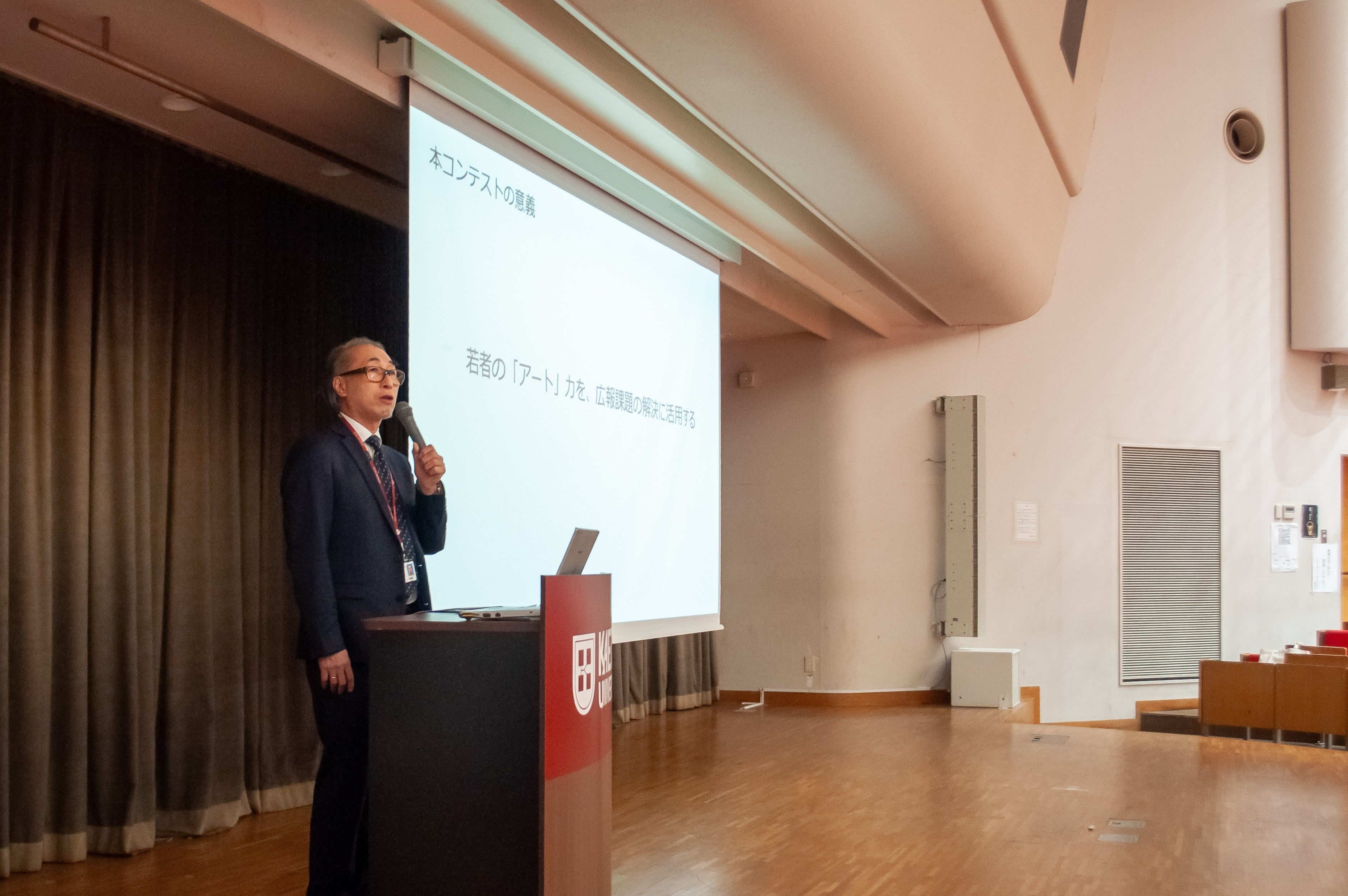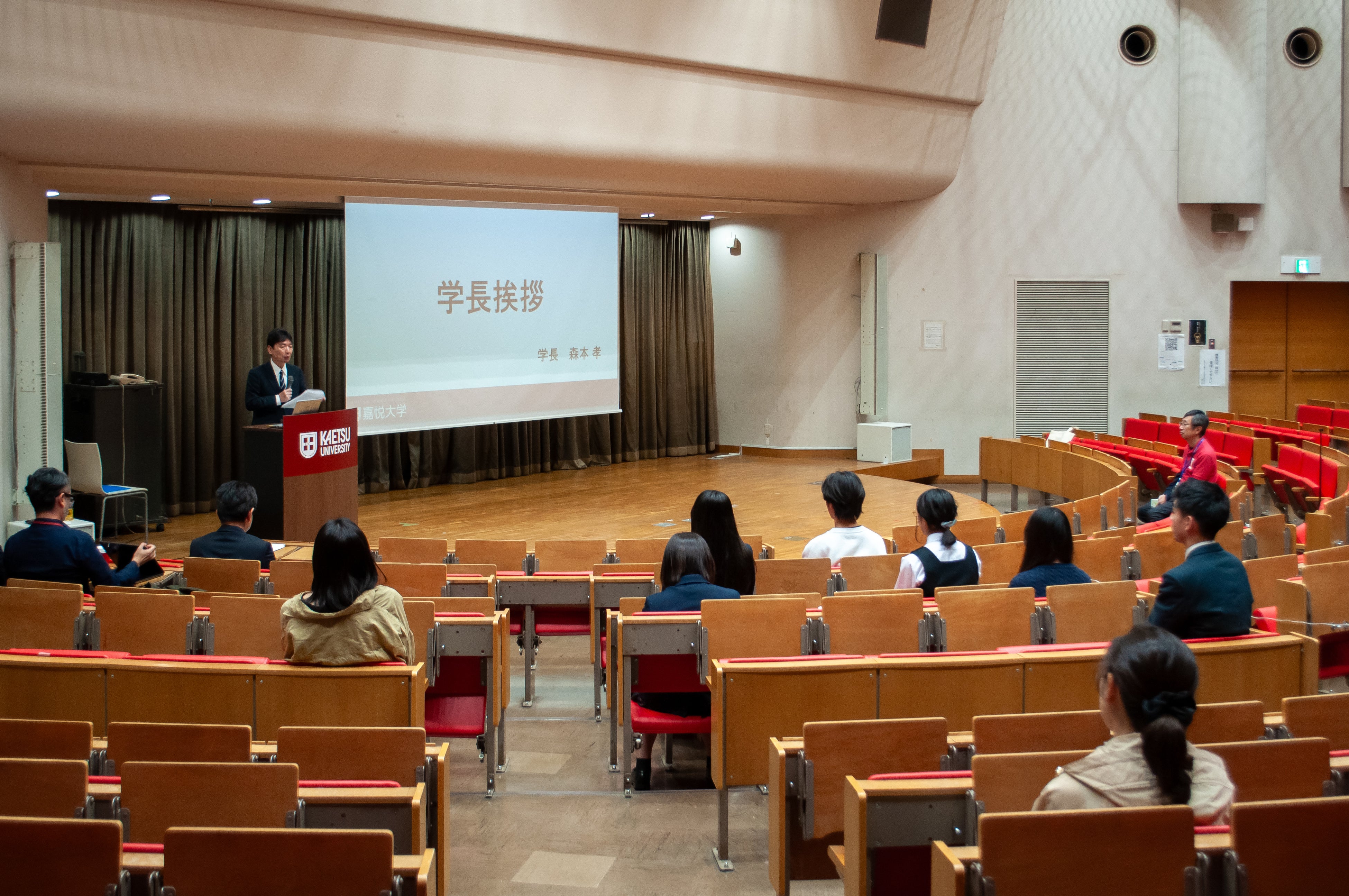 2025年11月2日(日)11時より、嘉悦大学のカエツホールで表彰式が執り行われました。森本学長より入賞者一人ひとりに表彰状と賞品が手渡され、表彰式への出席が叶わなかった最優秀賞受賞者からは受賞の感想をいただき司会が代読しました。審査委員長の國田圭作 経営経済学部教授からの講評と、審査員も務めた濱地 徹氏(大手PR代理店の現役社員、嘉悦大学非常勤講師)からの「『伝える』から『伝わる』へ」をテーマにした広報記念講話もありました。森本孝学長が閉会の挨拶を行い、式は盛況のうちに幕を閉じました。なお、表彰式の模様は、J:COMの地元情報番組「ジモトトピックス」にて11月8日(土)に紹介される予定です。
