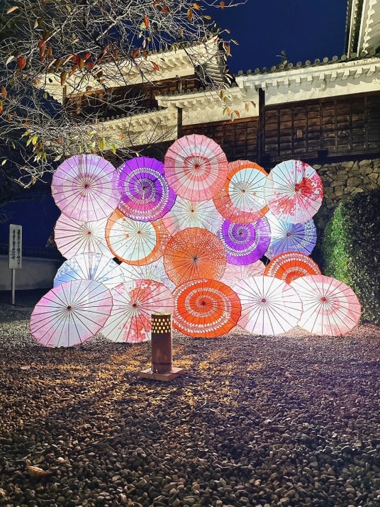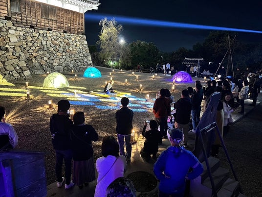 2023年10月28日~11月12日は「夜をあそぶ」をテーマに、メイン展示となる京都府在住アーティストたちによる福知山城×サウンド×竹灯籠イルミネーションのほか、流木アート×影絵のインスタレーションやキッチンカーブースも設置し、福知山城の夜に光と音で新たな“あそび”の空間をつくりました。