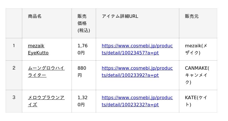 ・公式サイト :https://www.cosmebi.jp/?a=pt