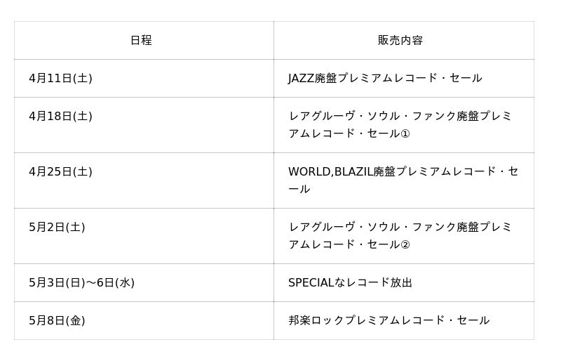 ■営業再開記念:中古レコード販売企画スケジュール