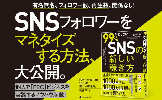 フォロワー数、再生数は全く関係なし! 「P2C」ビジネスの第一人者が、 SNS発信者しかできない「新しい稼ぎ方」を 徹底解説した1冊です。