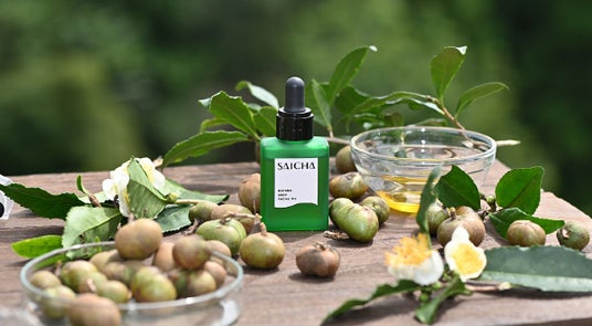 「采茶~SAICHA(サイチャ)」は、日本一のお茶の産地・静岡県の耕作放棄地などに実った「茶の実」を使用し、2粒から1滴しかとれない希少で、かつ一番搾りを使用した、サステナブル&ナチュラルスキンケアブランドです。