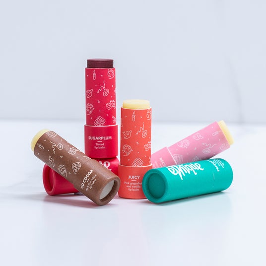 無香料、唇がうっすら赤く色づくティントタイプから、甘くて贅沢なチョコレートの香りまで、5種類からお選びください。