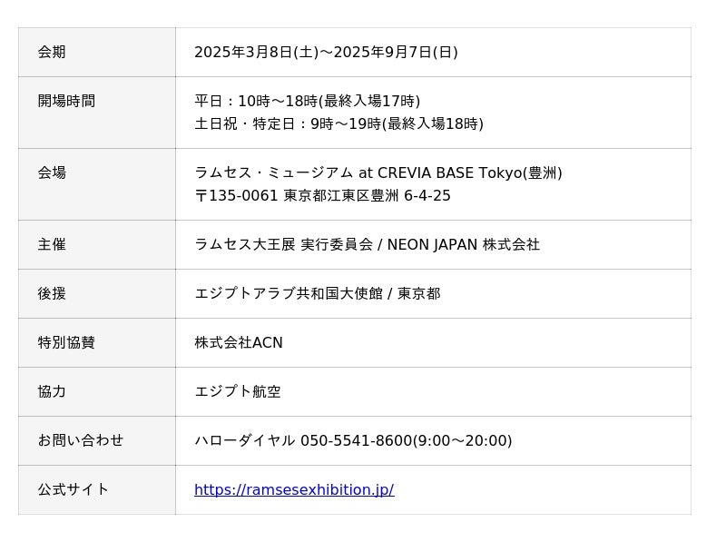 「ACN ラムセス大王展 ファラオたちの黄金」公式サイトはこちら