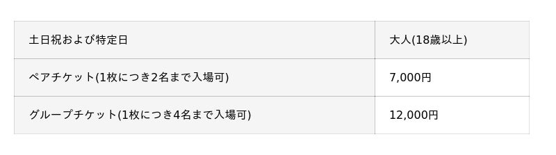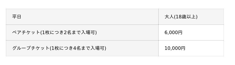 ※ペアチケット、グループチケットはお連れ様と同時にご入場ください。別々にご入場いただくことはできません 。
