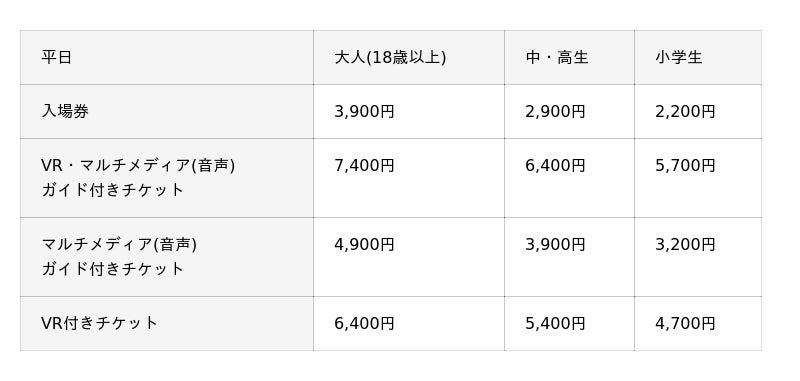 <チケット料金>