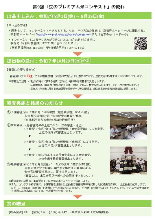 京都府ホームページ「『京のプレミアム米コンテスト』について」