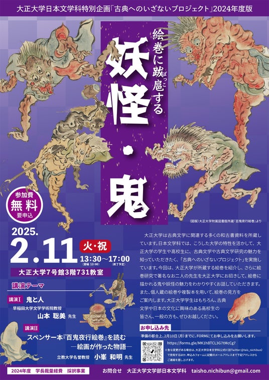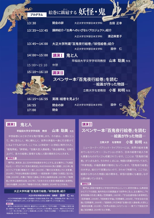 大正大学(学長:神達知純、所在地:東京都豊島区)では、2025年2月11日(火・祝)に文学部日本文学科特別企画として「絵巻に跋扈する妖怪・鬼」を開催します。