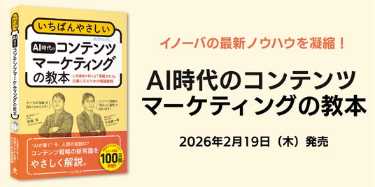 株式会社イノーバ(本社:東京都新宿区、代表取締役:宗像 淳、以下イノーバ)は、弊社CEO 宗像淳と、執行役員 兼 マーケティング・ソリューションセールス統括 平田継一郎の共著による書籍『いちばんやさしいAI時代のコンテンツマーケティングの教本』が、株式会社インプレスより2026年2月19日(木)に発売されたことをお知らせいたします。