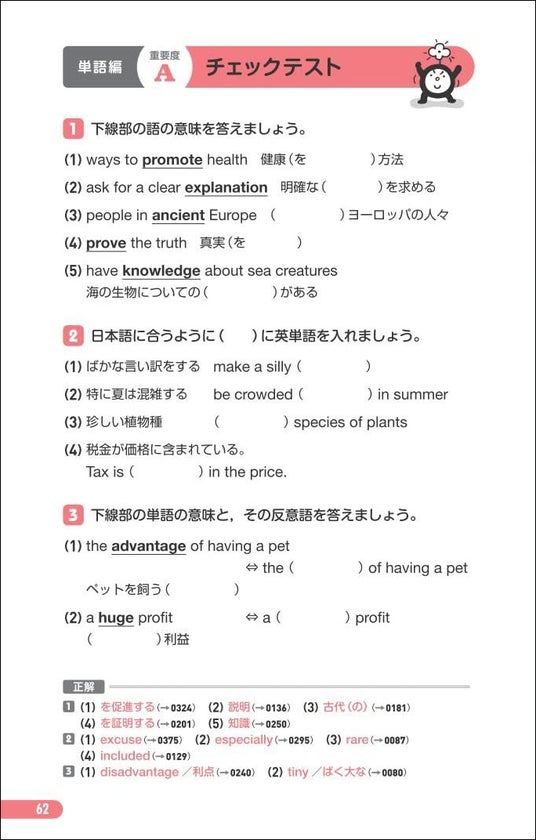 「単語編」「熟語編」には見出し語を覚えたか確認できるテストがついています。