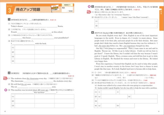 各単元の構成は、STEP1要点チェック・STEP2基本問題・STEP3得点アップ問題の3ステップで、段階的に定期テストの得点力が身に付きます。